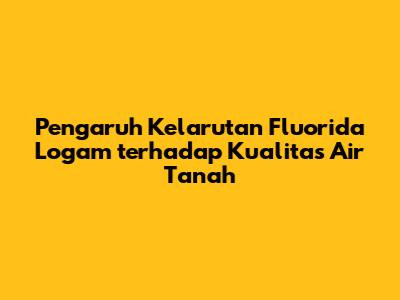 Pengaruh Kelarutan Fluorida Logam Terhadap Kualitas Air Tanah