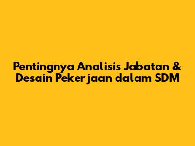 Pentingnya Analisis Jabatan & Desain Pekerjaan Dalam SDM