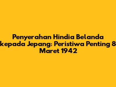 Guys, penyerahan Hindia Belanda kepada Jepang pada 8 Maret 1942 di Kalijati adalah peristiwa yang sangat penting dalam sejarah Indonesia. Peristiwa ini menandai berakhirnya era kolonialisme Belanda dan dimulainya era pendudukan Jepang. Penyerahan ini memberikan dampak yang signifikan bagi kehidupan masyarakat Indonesia, baik dari segi sosial, ekonomi, maupun politik.