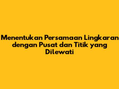 Misalnya, tentukan persamaan lingkaran yang berpusat di (0,0) dan melewati titik (4,-3). Nah, soal ini sebenarnya lebih sederhana karena pusatnya di (0,0). Kita tinggal hitung jari-jari dengan rumus jarak: