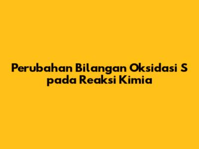 Perubahan Bilangan Oksidasi S Pada Reaksi Kimia