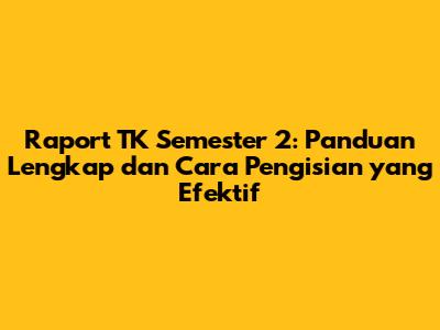 Raport TK Semester 2: Panduan Lengkap Dan Cara Pengisian