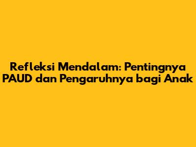 Refleksi Mendalam: Pentingnya PAUD Dan Pengaruhnya Bagi Anak