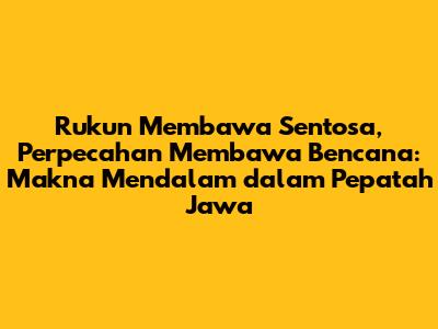 Guys, pernahkah kalian mendengar pepatah Jawa yang sangat terkenal, "Rukun gawe sentosa, crah gawe bubrah"? Pepatah ini bukan sekadar rangkaian kata, melainkan sebuah filosofi hidup yang sarat makna dan relevan sepanjang zaman. Dalam artikel ini, kita akan menyelami lebih dalam arti dari pepatah ini, menggali makna-makna tersembunyi, serta melihat bagaimana nilai-nilai yang terkandung di dalamnya dapat diterapkan dalam kehidupan sehari-hari. Yuk, simak ulasan lengkapnya!
