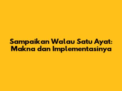 Guys, pernah denger ungkapan "Sampaikan Walau Satu Ayat"? Ungkapan ini sering banget kita denger, terutama di kalangan umat Muslim. Tapi, tau gak sih apa makna sebenernya dari ungkapan ini dan gimana cara kita mengimplementasikannya dalam kehidupan sehari-hari? Nah, di artikel ini, kita bakal bahas tuntas tentang "Sampaikan Walau Satu Ayat", mulai dari latar belakang, makna mendalam, hingga cara praktis mengamalkannya. Jadi, simak terus ya!