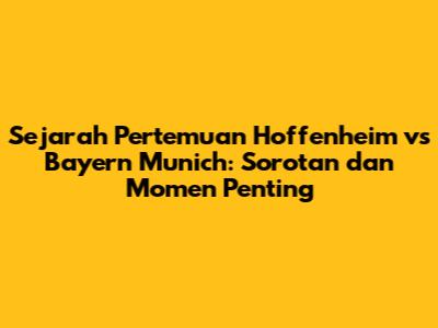 Dalam sejarah pertemuan Hoffenheim dan Bayern Munich, ada banyak momen bersejarah yang patut dikenang. Misalnya, ketika Hoffenheim berhasil mengalahkan Bayern Munich untuk pertama kalinya. Atau, ketika terjadi comeback dramatis yang mengubah jalannya pertandingan. Momen-momen seperti ini selalu menjadi perbincangan hangat di kalangan penggemar sepak bola. Kalian pasti punya momen favorit kan?