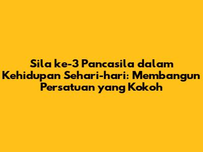 Sila Ke-3 Pancasila Dalam Kehidupan Sehari-hari
