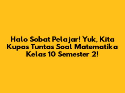 Gimana kabarnya, guys? Semoga selalu semangat ya buat belajar. Kali ini, kita mau ngebahas sesuatu yang pasti dicari-cari sama kalian, yaitu soal matematika kelas 10 semester 2 dan pembahasannya. Matematika emang kadang bikin pusing, apalagi kalau materinya makin naik kelas. Tapi jangan khawatir! Dengan latihan soal yang tepat dan pembahasan yang jelas, dijamin deh kalian bakal makin pede ngadepin ulangan, ujian, bahkan olimpiade sekalipun.