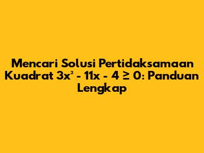 Hey guys! Pernah gak sih kalian ketemu soal matematika yang bikin mikir keras? Salah satunya adalah pertidaksamaan kuadrat. Nah, kali ini kita bakal bahas tuntas cara mencari solusi dari pertidaksamaan kuadrat 3x² - 11x - 4 ≥ 0. Jangan khawatir, kita akan pecah soal ini langkah demi langkah biar kalian semua paham!