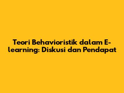 Teori Behavioristik Dalam E-learning: Diskusi Dan Pendapat