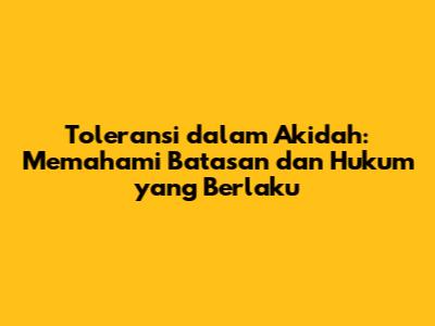 Toleransi dalam akidah adalah sikap menghargai dan menghormati keyakinan orang lain, meskipun berbeda dengan keyakinan kita sendiri. Toleransi ini sangat penting untuk menciptakan kehidupan yang rukun dan damai.