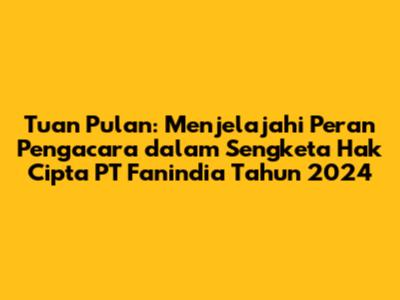 Tuan Pulan, seorang pengacara yang berdedikasi, menjadi pusat perhatian pada tahun 2024 ketika ia menangani sengketa kasus penyalahgunaan hak cipta yang melibatkan PT Fanindia. Kasus ini tidak hanya menyoroti kompleksitas hukum terkait hak cipta, tetapi juga memberikan gambaran tentang peran krusial pengacara dalam melindungi kepentingan klien dan menegakkan keadilan. Dalam artikel ini, kita akan membahas secara mendalam peran Tuan Pulan dalam menangani kasus ini, implikasi hukumnya, serta imbalan yang diterimanya.