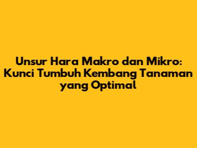 Hai guys! Pernahkah kalian bertanya-tanya, apa sih rahasia di balik tanaman yang tumbuh subur dan menghasilkan buah atau bunga yang melimpah? Jawabannya terletak pada unsur hara, nutrisi penting yang dibutuhkan tanaman untuk tumbuh dan berkembang dengan baik. Dalam artikel ini, kita akan membahas secara mendalam tentang unsur hara makro dan mikro, dua kelompok nutrisi utama yang memegang peranan krusial dalam kehidupan tanaman. Yuk, simak ulasannya!