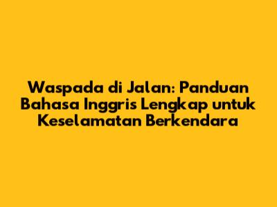 Waspada Di Jalan: Panduan Bahasa Inggris Lengkap Untuk Keselamatan Berkendara
