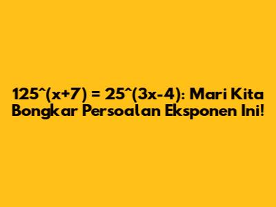 Guys, kali ini kita akan menyelami serunya dunia eksponen! Kita akan membahas soal yang cukup menarik, yaitu 125^(x+7) = 25^(3x-4). Jangan khawatir kalau soal ini terlihat rumit, karena kita akan membahasnya secara detail dan mudah dipahami. Tujuannya, agar kalian semua, baik yang baru belajar maupun yang sudah jago, bisa semakin mahir dalam menyelesaikan soal-soal eksponen. Kita akan mulai dari dasar, lalu bertahap menuju cara penyelesaian yang efektif. Jadi, siapkan alat tulis kalian, dan mari kita mulai petualangan seru ini!