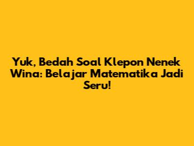 Yuk, Bedah Soal Klepon Nenek Wina: Belajar Matematika Jadi Seru!