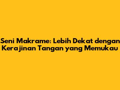 Seni makrame adalah teknik membuat simpul-menyimpul tali untuk menghasilkan berbagai macam kerajinan tangan yang unik dan artistik. Teknik ini melibatkan keahlian dalam membuat berbagai macam simpul yang rumit dan indah, menghasilkan karya seni yang bernilai tinggi.