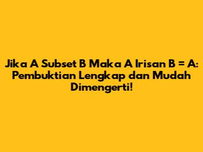Hay guys! Pernah nggak sih kalian bertanya-tanya tentang hubungan antara himpunan A dan B kalau A itu subset dari B? Nah, salah satu konsep penting dalam teori himpunan adalah irisan. Pertanyaannya, kalau A itu subset B, apakah irisan antara A dan B itu sama dengan A? Jawabannya adalah YA! Tapi, kenapa bisa begitu? Yuk, kita bahas tuntas pembuktiannya di artikel ini!
