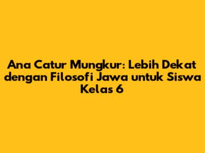 Ana catur mungkur tegese bukan hanya sekadar kata-kata, melainkan sebuah filosofi yang kaya makna. Memahami dan menerapkan prinsip ini akan memberikan dampak positif dalam kehidupan kalian sebagai siswa kelas 6. Dengan ana catur mungkur, kalian akan belajar untuk berpikir sebelum berbicara, memilih kata-kata yang tepat, menghargai orang lain, dan membangun hubungan yang harmonis. Jadi, jangan ragu untuk terus belajar dan menerapkan nilai-nilai ana catur mungkur dalam setiap aspek kehidupan kalian.