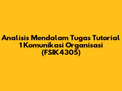 Guys, kali ini kita akan membahas tuntas tentang tugas tutorial 1 dalam mata kuliah Komunikasi Organisasi (FSIK4305). Tugas ini mengharuskan kita untuk memilih salah satu organisasi yang ada di sekitar kita, lalu menganalisisnya. Penasaran kan bagaimana cara mengerjakannya dengan baik dan benar? Mari kita bedah bersama-sama!