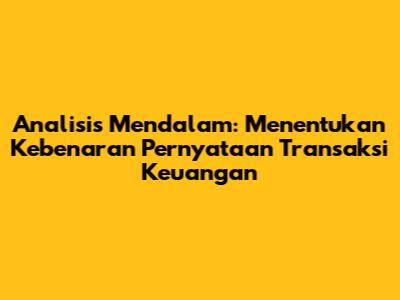 Guys, mari kita selami dunia pencatatan transaksi keuangan! Kali ini, kita akan menguji pemahaman kita tentang bagaimana transaksi keuangan dicatat. Kita akan menganalisis beberapa pernyataan dan menentukan apakah pernyataan tersebut benar atau salah. Pengetahuan ini sangat penting, baik bagi kalian yang baru belajar akuntansi maupun yang sudah mahir. Pemahaman yang kuat tentang pencatatan transaksi akan membantu kalian membuat keputusan keuangan yang lebih baik dan mengelola keuangan dengan lebih efektif. Jadi, siapkan diri kalian untuk berpikir kritis dan mari kita mulai!