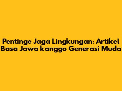 Hai cah enom kabeh! Ing artikel iki, awake dhewe bakal ngrembug babagan pentinge jaga lingkungan nganggo basa Jawa sing gampang dingerteni. Lingkungan kuwi omah kita, panggonan awake dhewe urip lan nglakoni aktivitas saben dina. Yen lingkungan rusak, ya mesthi urip awake dhewe uga bakal kena pengaruh. Mulane, jaga lingkungan kuwi dudu mung tanggung jawabe pemerintah utawa organisasi lingkungan, nanging tanggung jawabe awake dhewe kabeh.