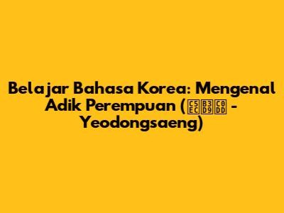 Belajar Bahasa Korea: Mengenal Adik Perempuan (여동생 - Yeodongsaeng)