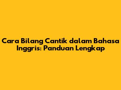 Cara Bilang Cantik Dalam Bahasa Inggris: Panduan Lengkap