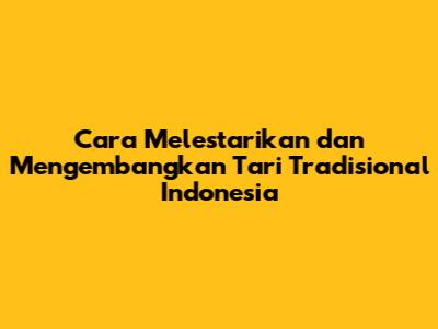 Cara Melestarikan Dan Mengembangkan Tari Tradisional Indonesia