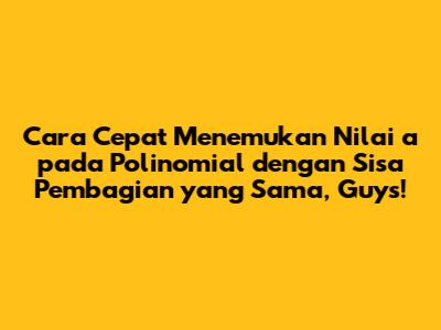 Cara Mudah Menghitung Nilai 'a' Polinomial Dengan Sisa Pembagian Sama
