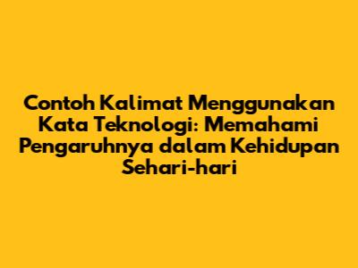 Contoh Kalimat Menggunakan Kata Teknologi