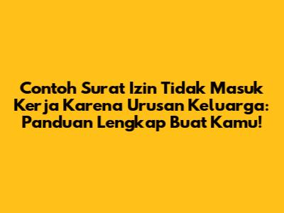 Guys, pernah nggak sih kamu tiba-tiba dihadapkan sama situasi genting yang mengharuskan kamu buat izin nggak masuk kerja? Apalagi kalau urusannya menyangkut keluarga. Pasti panik dong mau bikin surat izinnya kayak gimana. Tenang, kamu nggak sendirian! Dalam artikel ini, kita bakal kupas tuntas soal contoh surat izin tidak masuk kerja karena urusan keluarga yang bisa jadi panduan super praktis buat kamu. Kita akan bahas mulai dari apa aja sih yang perlu dicantumkan, sampai contoh surat yang bisa langsung kamu pakai atau modifikasi. Jadi, siap-siap catat ya!