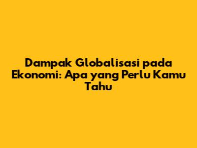 Dampak Globalisasi Pada Ekonomi: Apa Yang Perlu Kamu Tahu