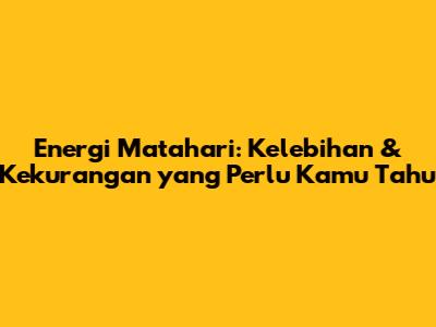 Energi Matahari: Kelebihan & Kekurangan Yang Perlu Kamu Tahu