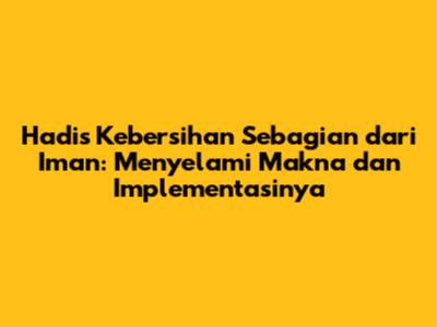 Penjelasan Hadis Kebersihan Sebagian dari Iman. Hadis ini diriwayatkan oleh berbagai perawi hadis, salah satunya adalah Imam Muslim. Meskipun redaksinya bervariasi, maknanya tetap sama: kebersihan memiliki kedudukan yang sangat penting dalam Islam. Beberapa ulama menjelaskan bahwa kebersihan dalam hadis ini mencakup: