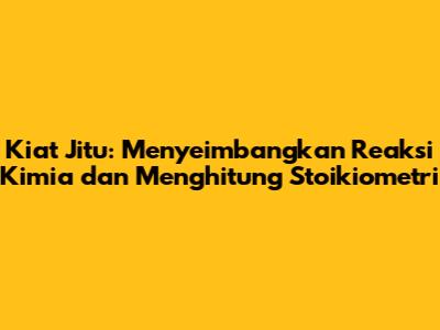 Kiat Jitu: Menyeimbangkan Reaksi Kimia Dan Menghitung Stoikiometri