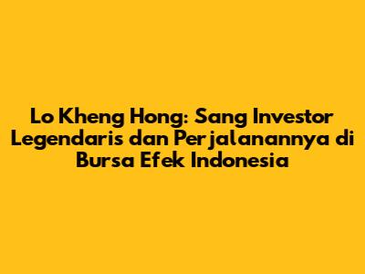 Guys, siapa sih yang nggak kenal dengan nama Lo Kheng Hong? Seorang investor ritel legendaris yang namanya sering banget disebut dalam dunia investasi saham di Indonesia, khususnya di Bursa Efek Indonesia (BEI). Kisah suksesnya dalam berinvestasi, terutama dengan gaya value investing, telah menginspirasi banyak orang untuk turut mencoba peruntungan di pasar modal. Artikel ini akan mengajak kita untuk menyelami lebih dalam perjalanan Lo Kheng Hong, bagaimana ia meraih cuan besar, dan apa saja yang bisa kita pelajari dari strateginya.