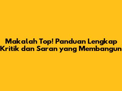 Makalah Top! Panduan Lengkap Kritik Dan Saran Yang Membangun