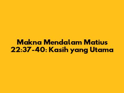So guys, mari kita berkomitmen untuk menerapkan Matius 22:37-40 dalam kehidupan kita sehari-hari. Mari kita jadikan kasih sebagai fondasi dari setiap hubungan kita, setiap keputusan kita, dan setiap tindakan kita. Dengan kasih, kita bisa mengubah dunia, satu orang pada satu waktu. Semangat!