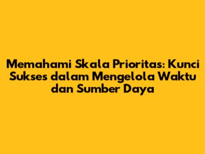 Jadi, bisa dibilang skala prioritas adalah landasan untuk mencapai kesuksesan dalam berbagai aspek kehidupan.