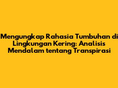 Guys, pernahkah kalian bertanya-tanya bagaimana tumbuhan bisa bertahan hidup di lingkungan yang kering dan panas? Nah, artikel ini akan mengajak kita untuk menyelami dunia tumbuhan yang unik, khususnya yang ditemukan di daerah dengan iklim ekstrem. Kita akan fokus pada salah satu adaptasi kunci yang memungkinkan tumbuhan ini bertahan hidup: transpirasi. Lebih spesifik lagi, kita akan membahas tumbuhan yang menunjukkan laju transpirasi tinggi di siang hari. Penasaran kan?