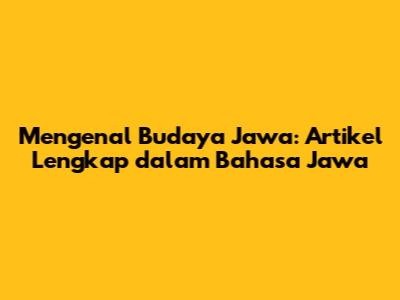 Mengenal Budaya Jawa: Artikel Lengkap Dalam Bahasa Jawa