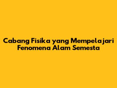 Guys, pernahkah kalian bertanya-tanya bagaimana alam semesta ini bekerja? Apa yang menyebabkan bintang-bintang bersinar, mengapa apel jatuh ke bumi, atau bagaimana listrik bisa menghidupkan lampu di rumah kita? Nah, semua pertanyaan itu ada jawabannya dalam dunia fisika! Fisika adalah ilmu yang mempelajari materi, energi, ruang, dan waktu, serta interaksi di antara mereka. Tapi, fisika itu luas banget, lho! Saking luasnya, fisika dibagi lagi menjadi beberapa cabang yang lebih spesifik. Masing-masing cabang ini fokus pada studi fenomena alam yang berbeda-beda. Jadi, kalau kamu penasaran cabang fisika mana yang mengkaji fenomena-fenomena tertentu, yuk kita bahas lebih lanjut!
