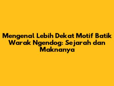 Guys, mari kita selami dunia batik yang kaya akan sejarah dan makna! Kali ini, kita akan membahas tentang salah satu motif batik yang unik dan menarik, yaitu motif Batik Warak Ngendog. Motif ini bukan hanya sekadar gambar di atas kain, tetapi juga sebuah cerita yang kaya akan nilai-nilai budaya dan sejarah kota Semarang, Jawa Tengah. Penasaran kan?