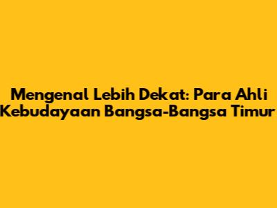 Mengenal Lebih Dekat: Para Ahli Kebudayaan Bangsa-Bangsa Timur