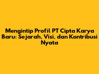 Mengenal PT Cipta Karya Baru: Profil Lengkap Dan Kontribusi