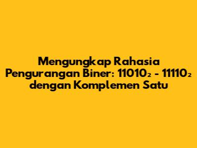 Guys, kali ini kita akan membahas sebuah soal menarik seputar dunia komputer, tepatnya mengenai operasi pengurangan pada bilangan biner. Soalnya cukup menantang, yaitu melakukan operasi pengurangan 11010โ - 11110โ menggunakan metode 1's complement. Tidak hanya itu, kita juga akan mengubah operasi pengurangan menjadi operasi penjumlahan, lalu menentukan apakah terjadi overflow atau tidak. Tenang saja, saya akan menjelaskan semuanya secara detail dan mudah dipahami, kok! Mari kita mulai petualangan seru ini!