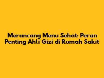 Merancang Menu Sehat: Peran Penting Ahli Gizi Di Rumah Sakit