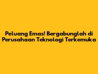 Peluang Emas! Bergabunglah Di Perusahaan Teknologi Terkemuka