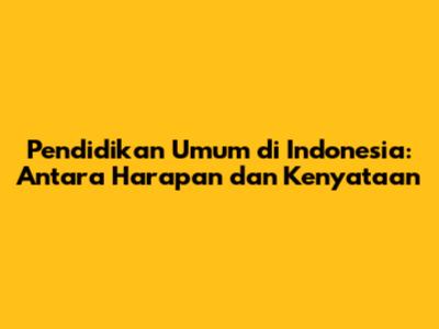 Pendidikan Umum Di Indonesia: Antara Harapan Dan Kenyataan